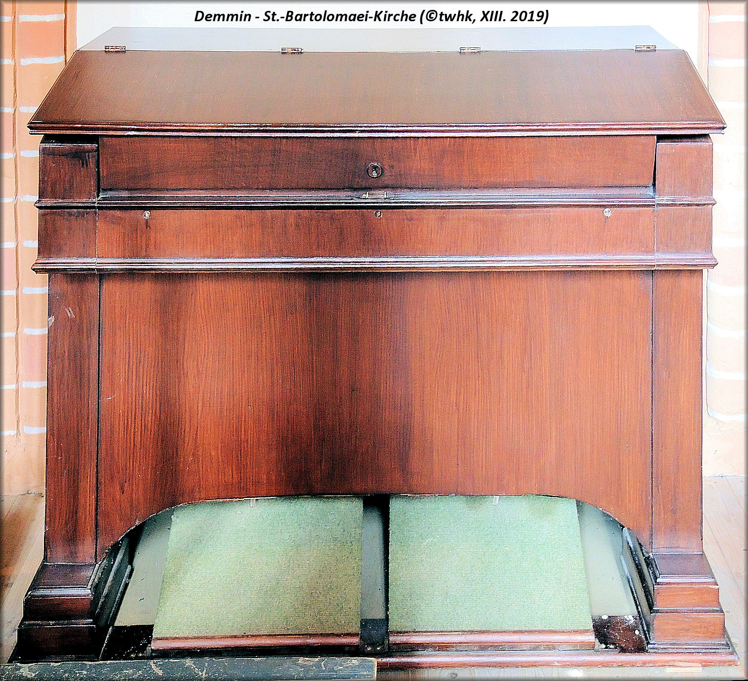 Bilder vom Spieltisch habe ich leider nicht, da mir kein Zutritt zur Orgelempore gewährt wurde.