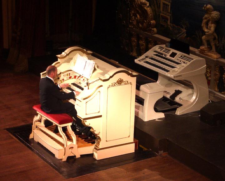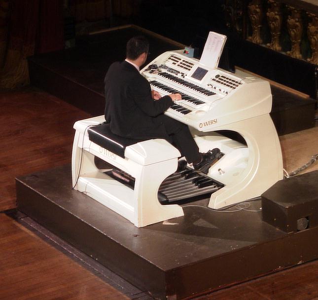 auf einer modernen, elektronischen Orgel gegeben, die auch Theaterorgel-Sounds bietet.